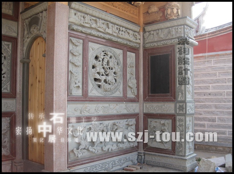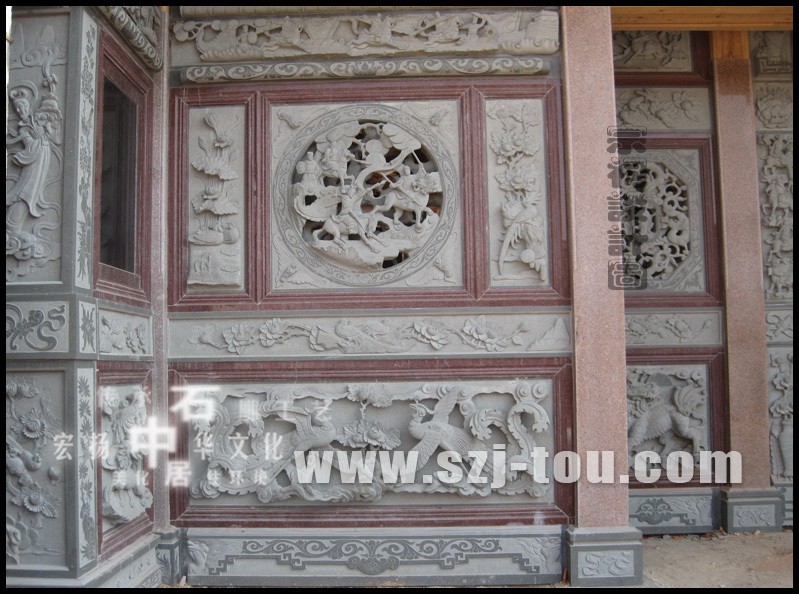 古建圍墻鏤空窗花石雕